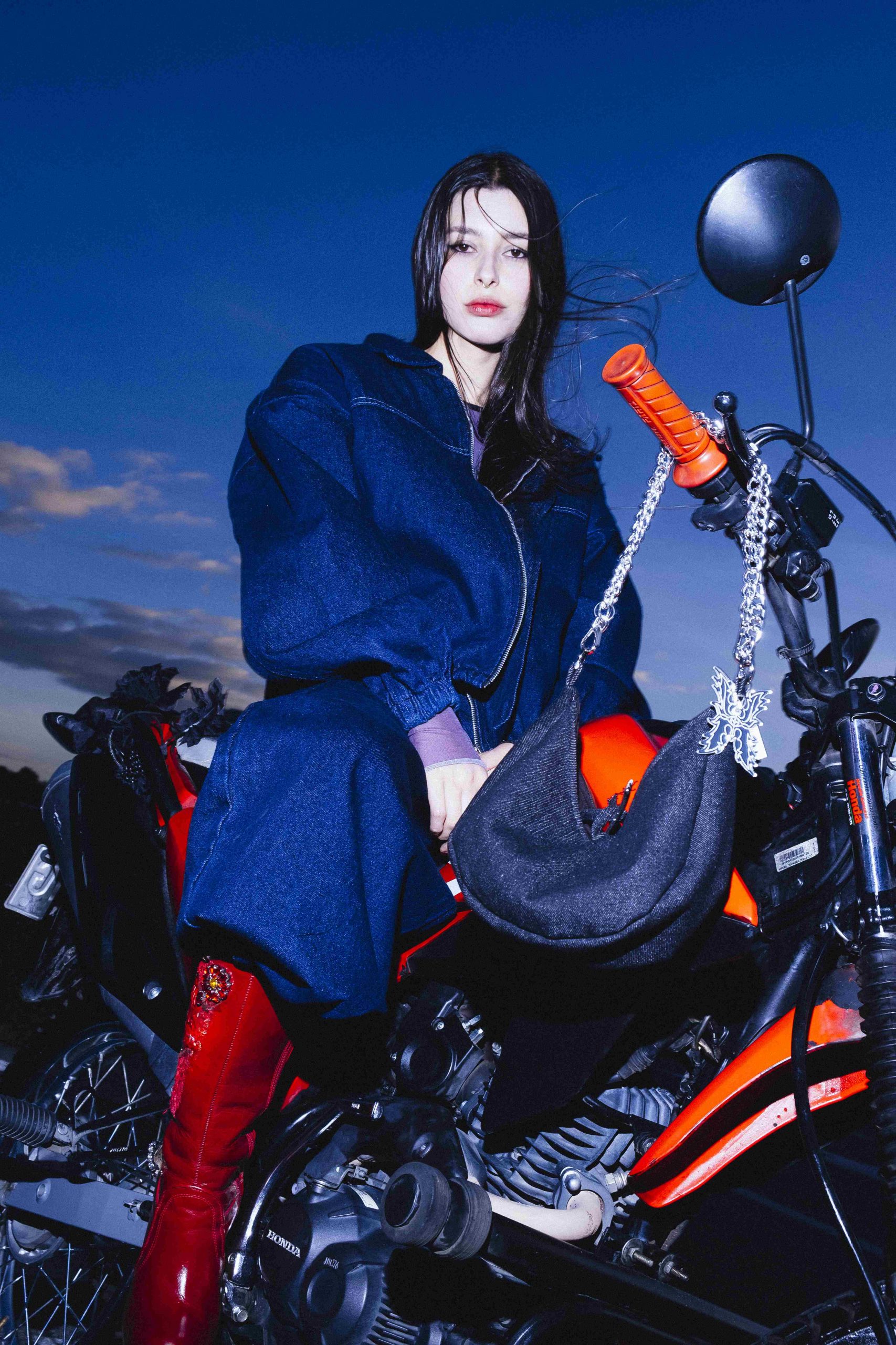 Chaqueta denim con apliques bordados, cremallera metálica y corte bomber boxy fit. Forro acolchado y bolsillo interno para mayor funcionalidad. Streetwear con detalle artístico.